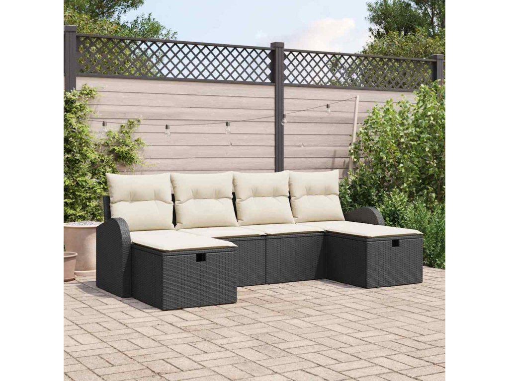 Sada zahradních pohovek s polštářem 6 pcs Černá Poly ratan 3360448