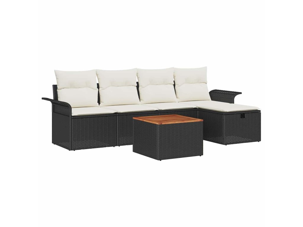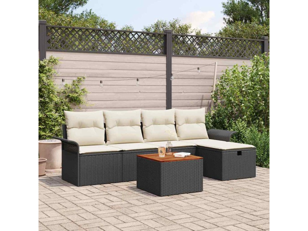 Sada zahradních pohovek s polštářem 6 pcs Černá Poly ratan 3360778