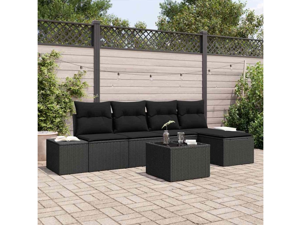 Sada zahradních pohovek s polštářem 6 pcs Černá polyratan 3347033