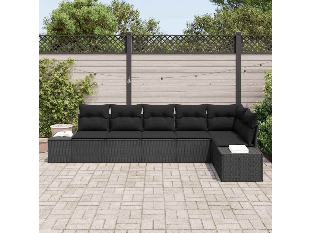 Sada zahradních pohovek s polštářem 6 pcs Černá polyratan 3347083