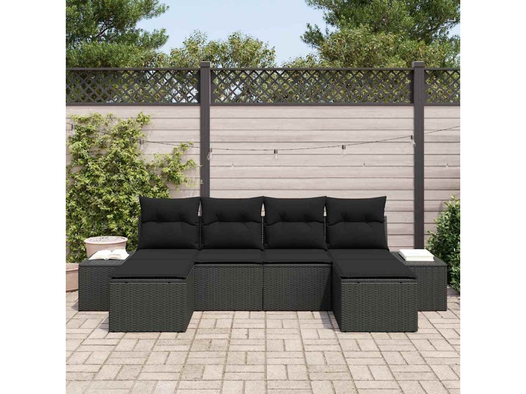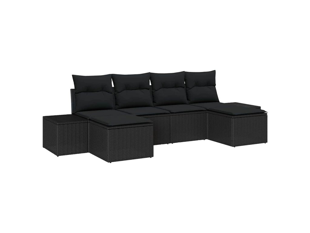 Sada zahradních pohovek s polštářem 6 pcs Černá polyratan 3347173