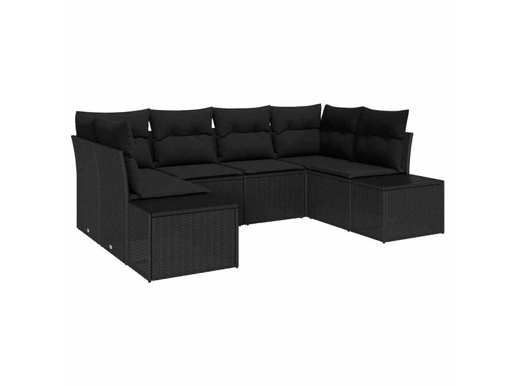 Sada zahradních pohovek s polštářem 6 pcs Černá polyratan 3347203