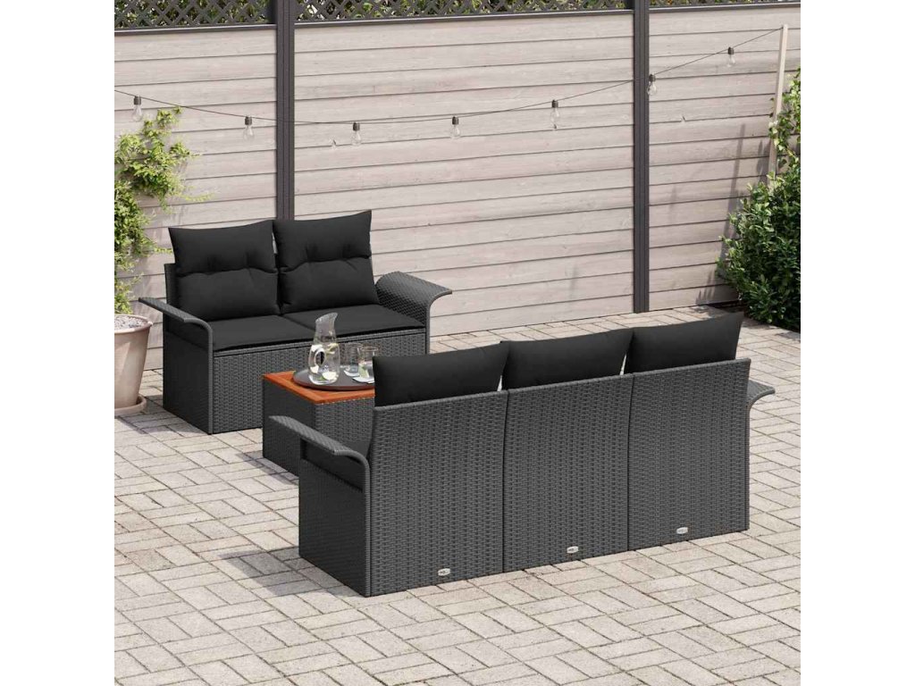 Sada zahradních pohovek s polštářem 6 pcs Černá polyratan 3347268