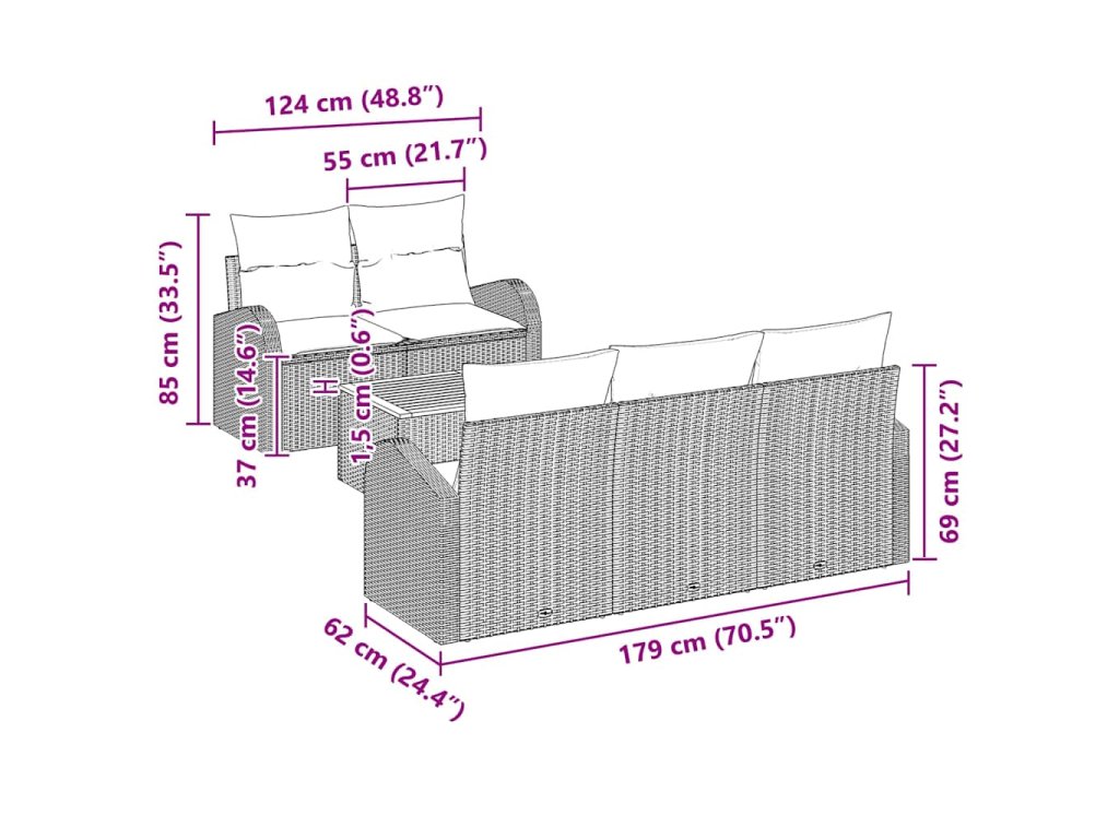 - 1 x Středový sedák: 55 x 62 x 85 cm (DxŠxV)