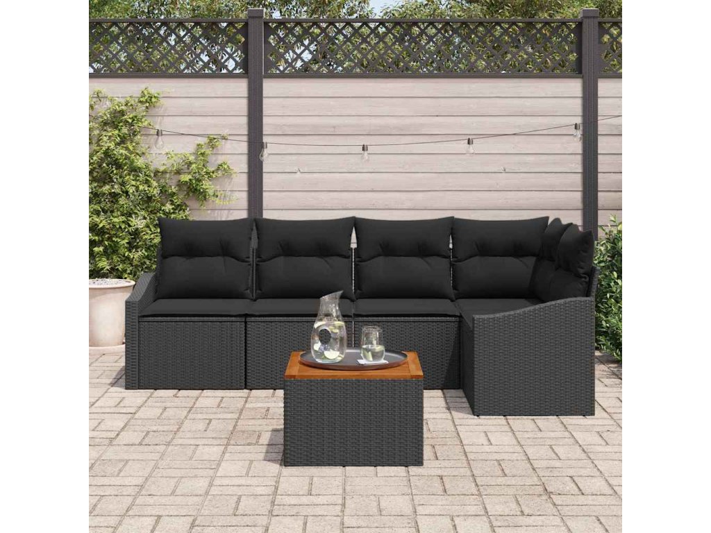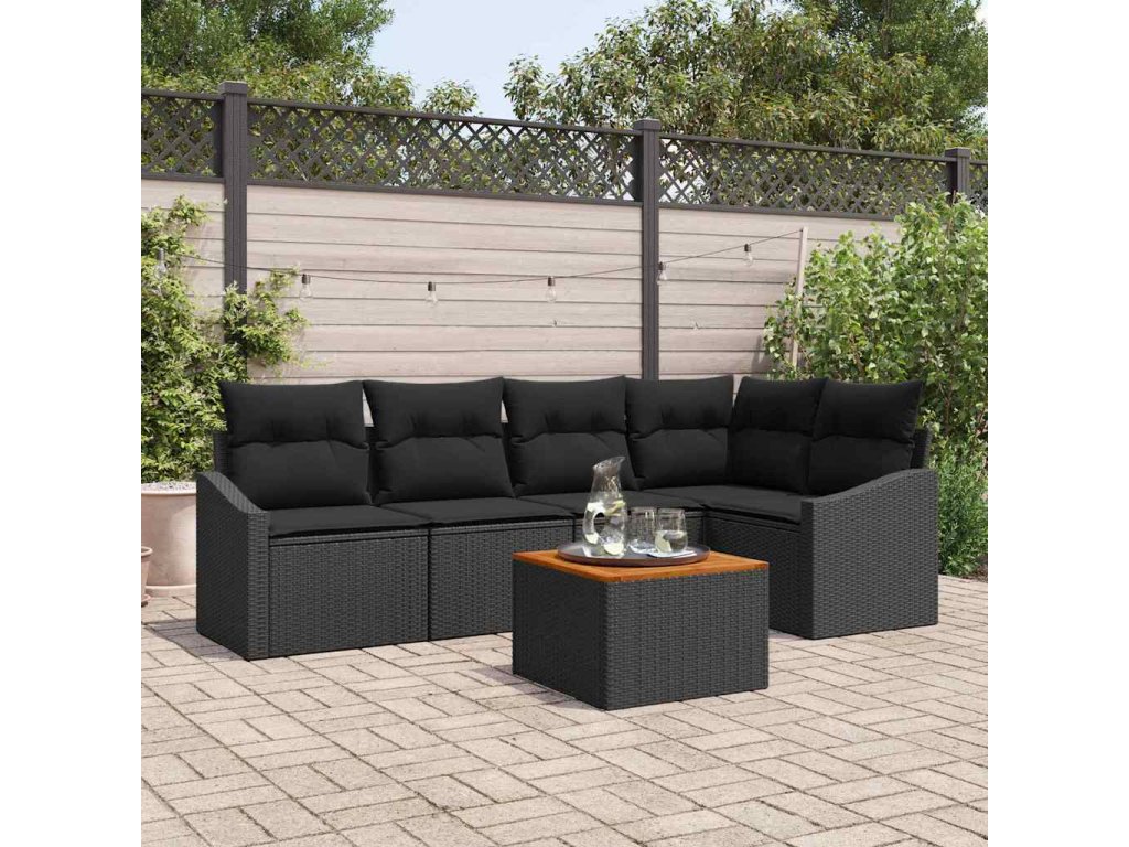 Sada zahradních pohovek s polštářem 6 pcs Černá polyratan 3347835