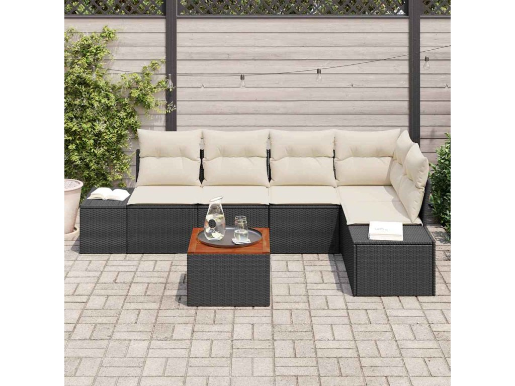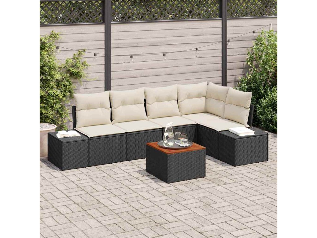 Sada zahradních pohovek s polštářem 6 pcs Černá polyratan 3347957