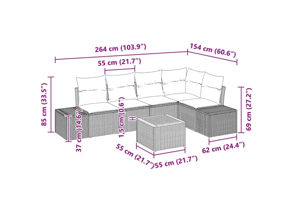 - 1 x rohové sedadlo: 62 x 62 x 85 cm (D x Š x V)
