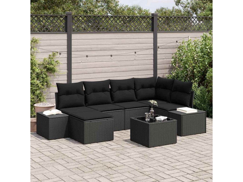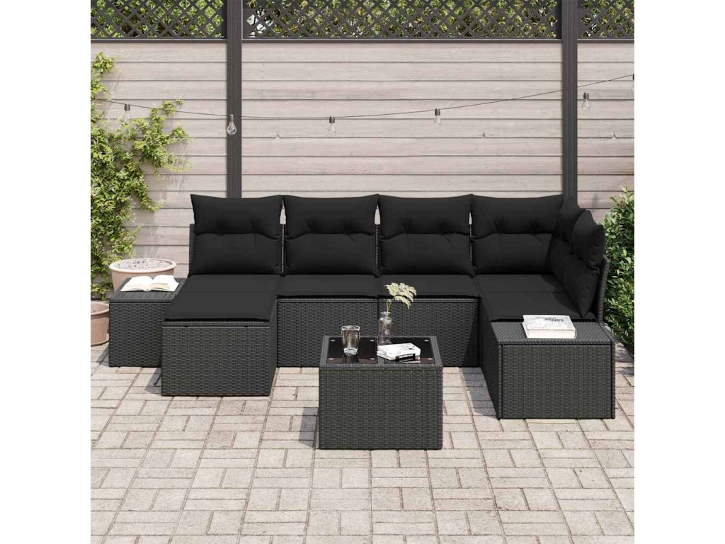 Sada zahradních pohovek s polštářem 6 pcs Černá polyratan 3355812