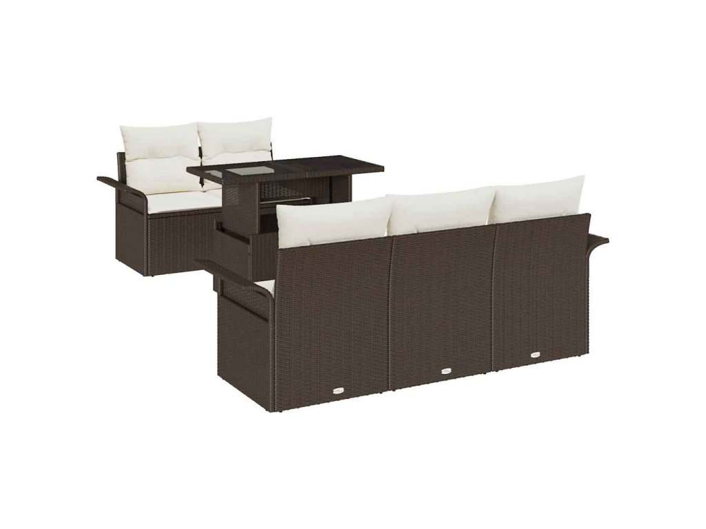 Sada zahradních pohovek s polštářem 6 pcs Hnědá Poly Ratan 3356931