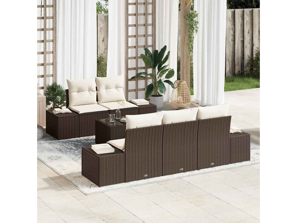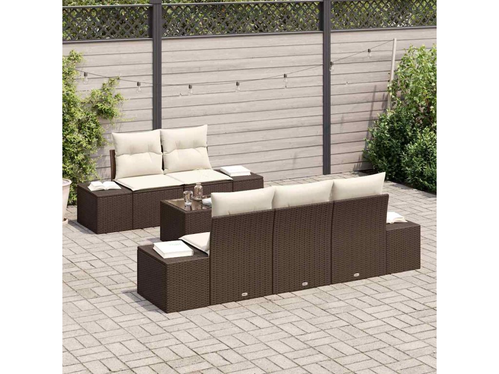 Sada zahradních pohovek s polštářem 6 pcs Hnědá polyratan 3346938