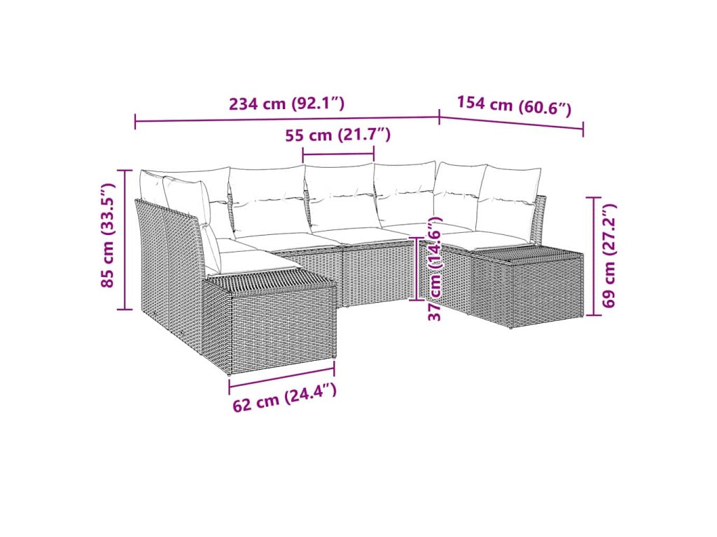 - Zahrnuté komponenty: Set obsahuje měkká polyesterová sedadla a venkovní polštáře, navržené pro maximální pohodlí a odolnost. Polyratanové opěrky a povrch dodávají nábytku elegantní vzhled. Každý kousek je navržen tak, aby byl trvanlivý a stylový.