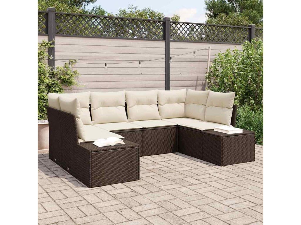 Sada zahradních pohovek s polštářem 6 pcs Hnědá polyratan 3347198