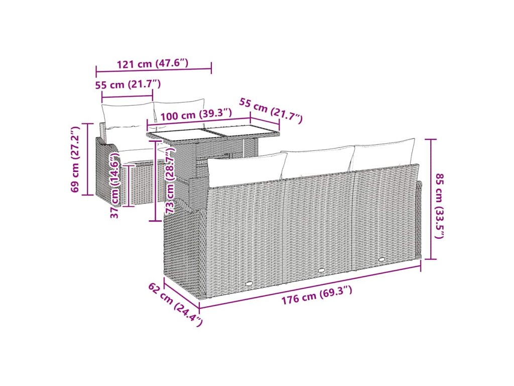 Sada zahradních pohovek s polštářem 6 pcs Hnědá polyratan 3348374
