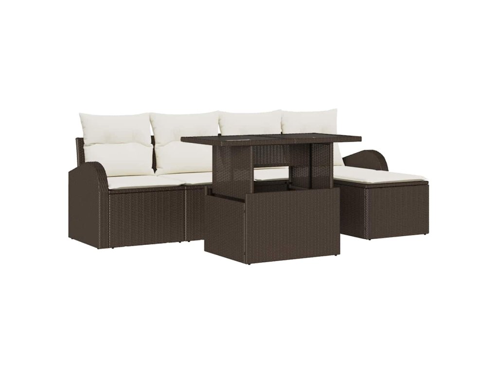 Sada zahradních pohovek s polštářem 6 pcs Hnědá polyratan 3348624