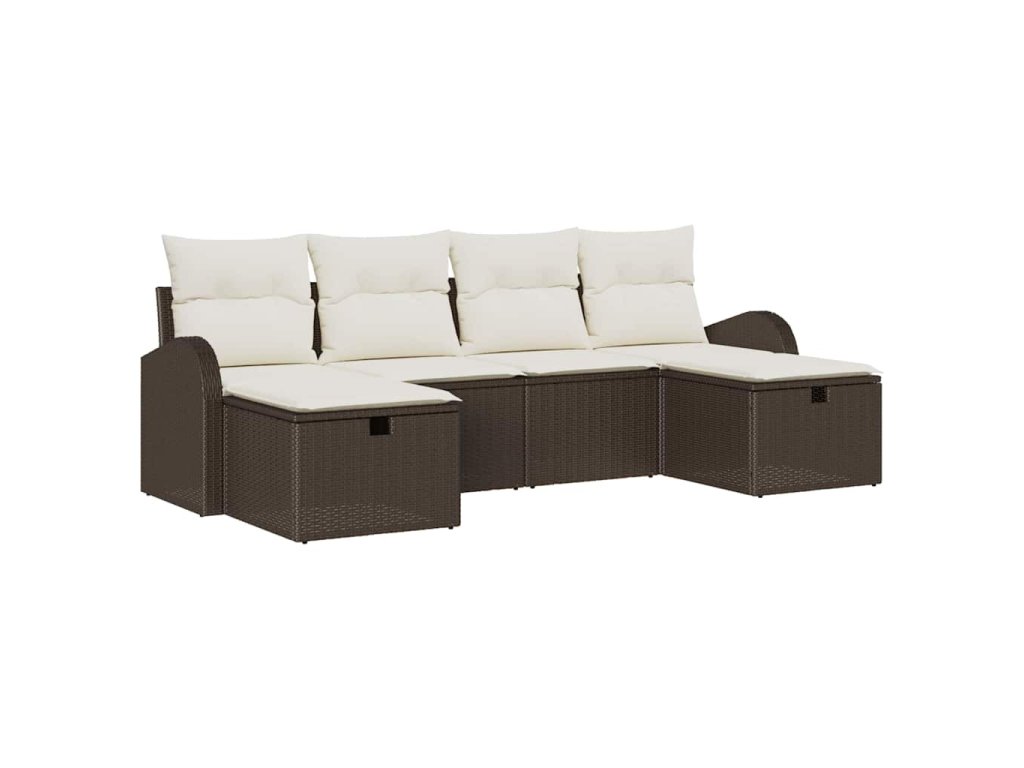 Sada zahradních pohovek s polštářem 6 pcs Hnědá polyratan 3360449