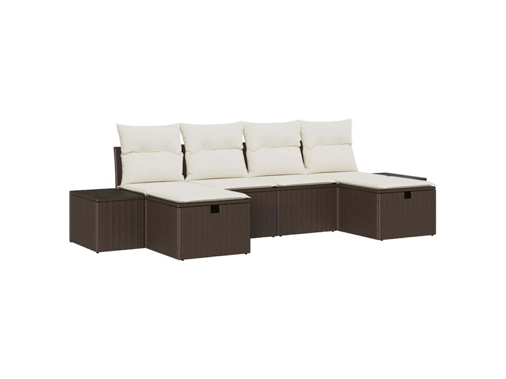 Sada zahradních pohovek s polštářem 6 pcs Hnědá polyratan 3360749