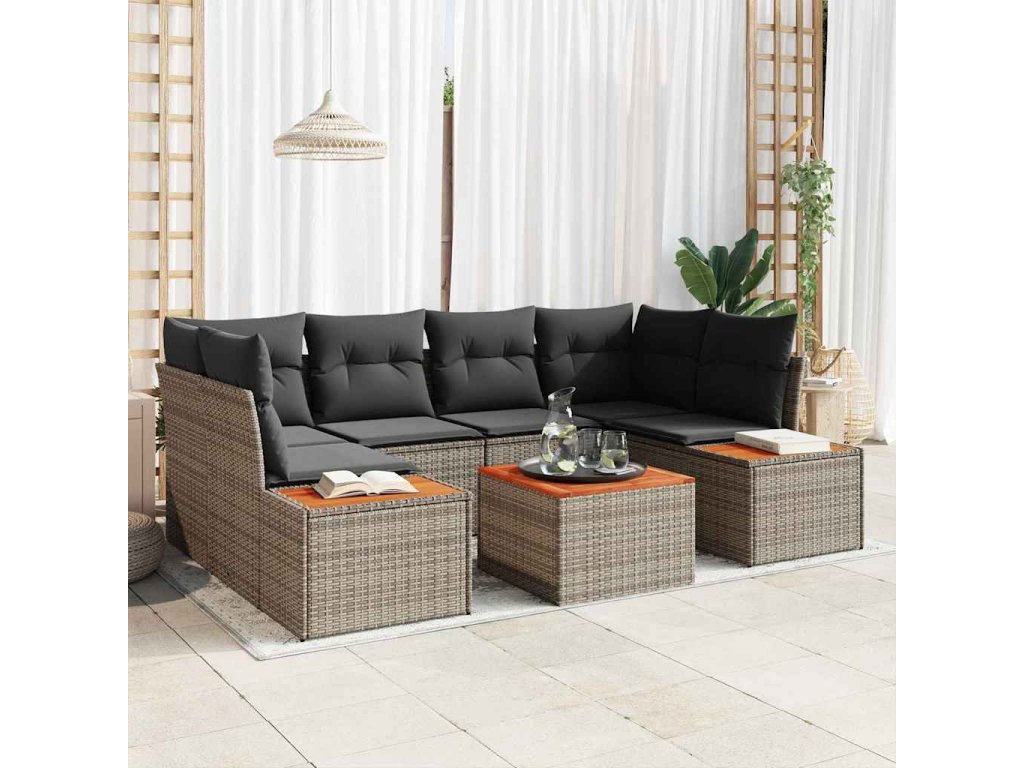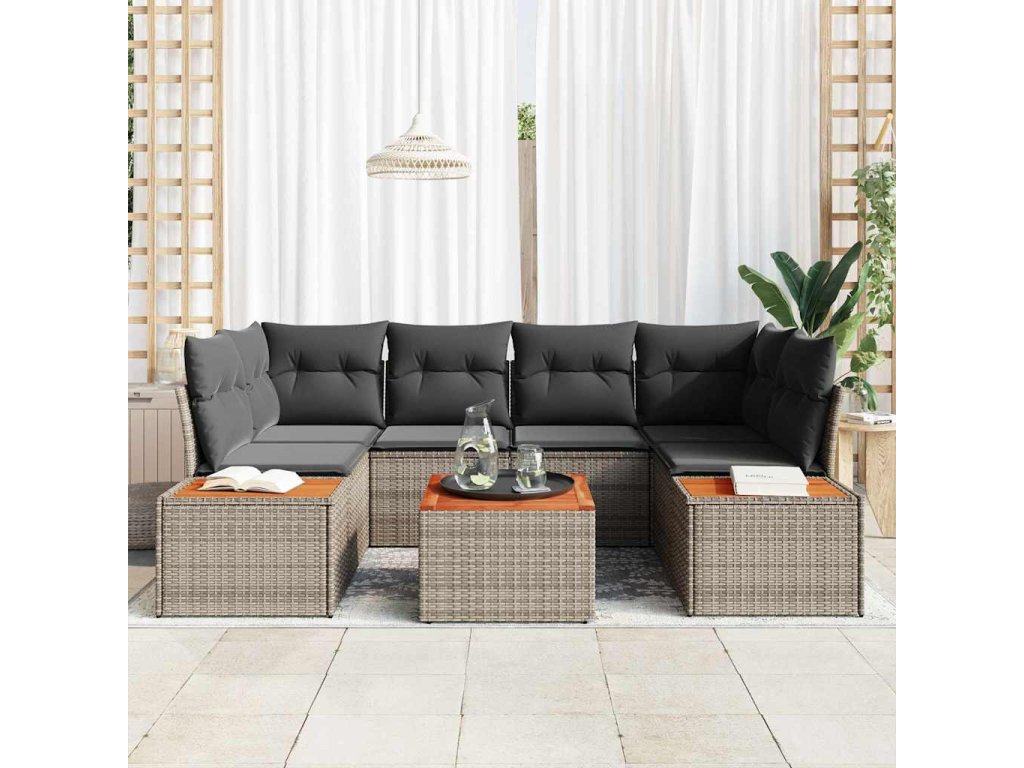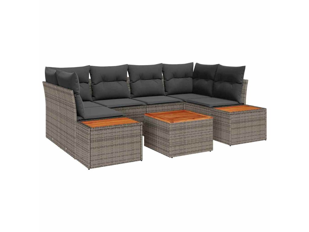Sada zahradních pohovek s polštářem 6 pcs Šedá Poly ratan 3348035