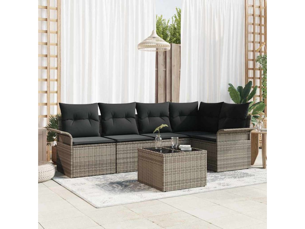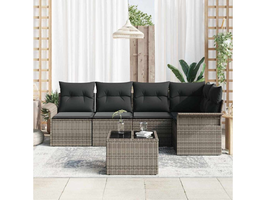 Sada zahradních pohovek s polštářem 6 pcs Šedá Poly ratan 3354038