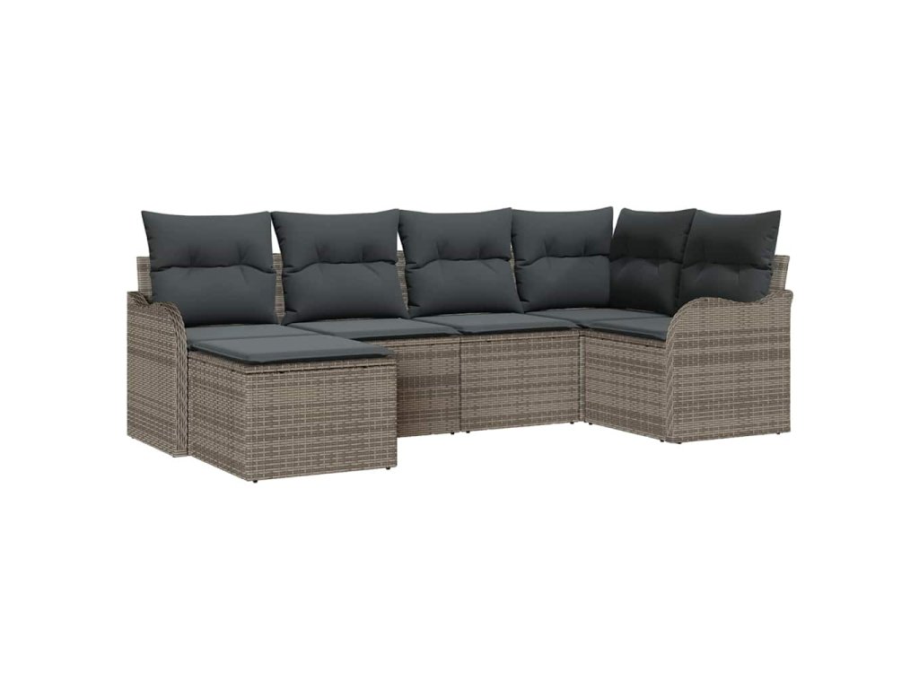 Sada zahradních pohovek s polštářem 6 pcs Šedá Poly ratan 3354438