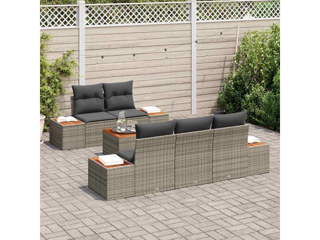 Sada zahradních pohovek s polštářem 6 pcs Šedá Poly ratan 3356694