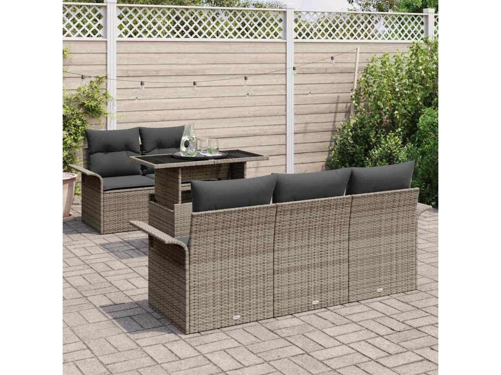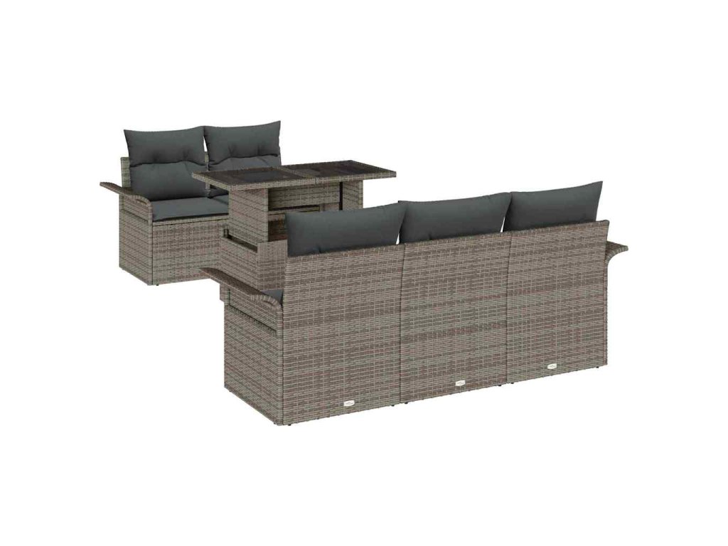 Sada zahradních pohovek s polštářem 6 pcs Šedá Poly Ratan 3356932