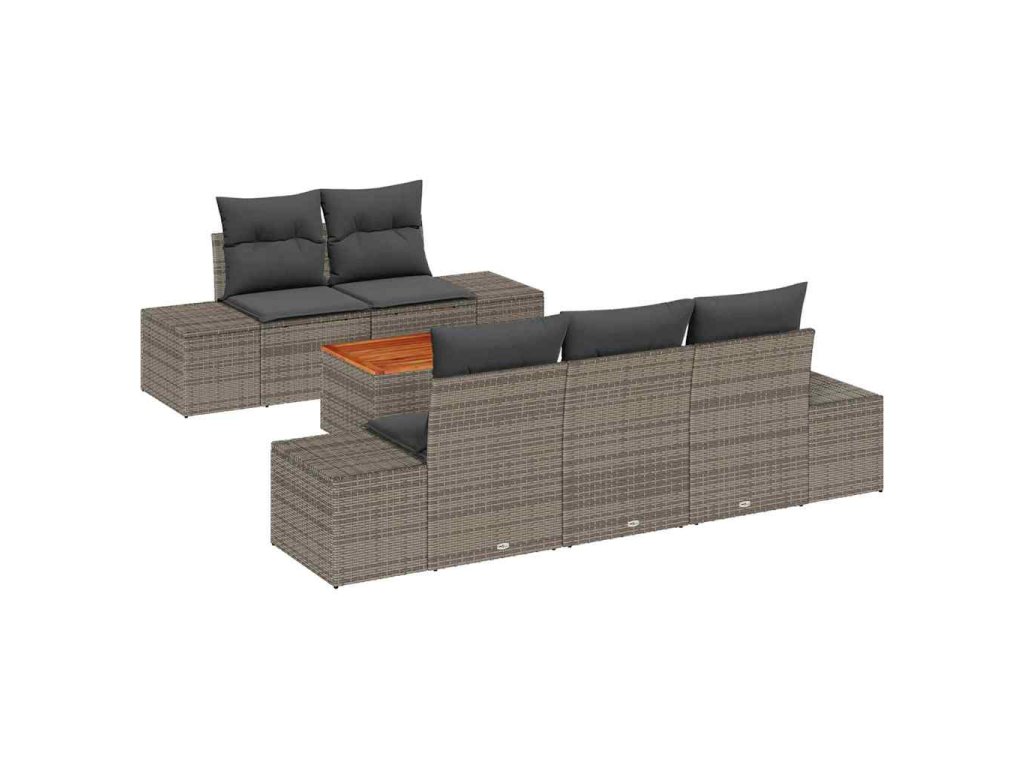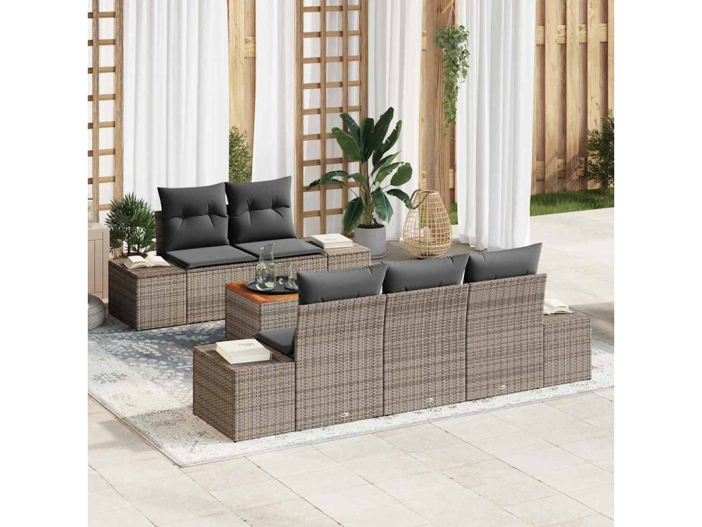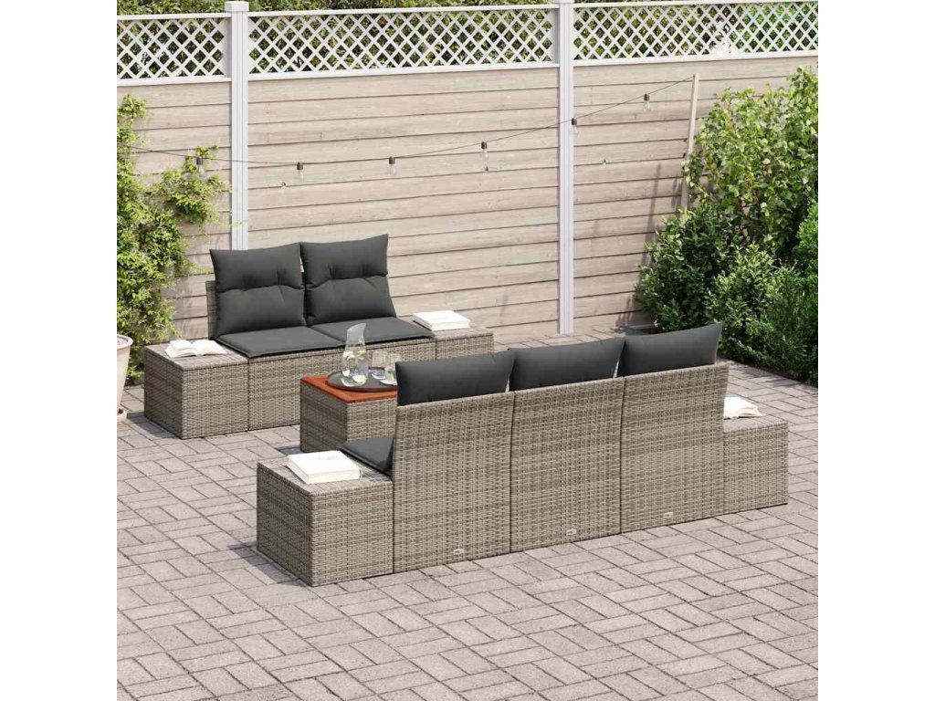 Sada zahradních pohovek s polštářem 6 pcs Šedá polyratan 3347895