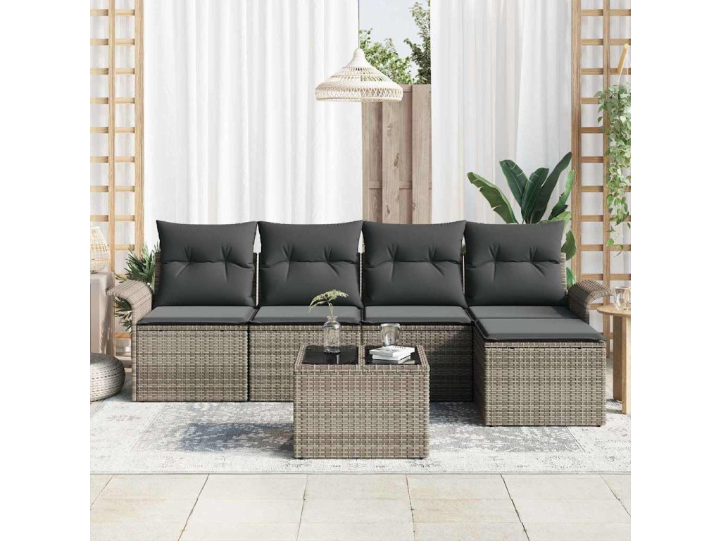 Sada zahradních pohovek s polštářem 6 pcs Šedá polyratan 3353998