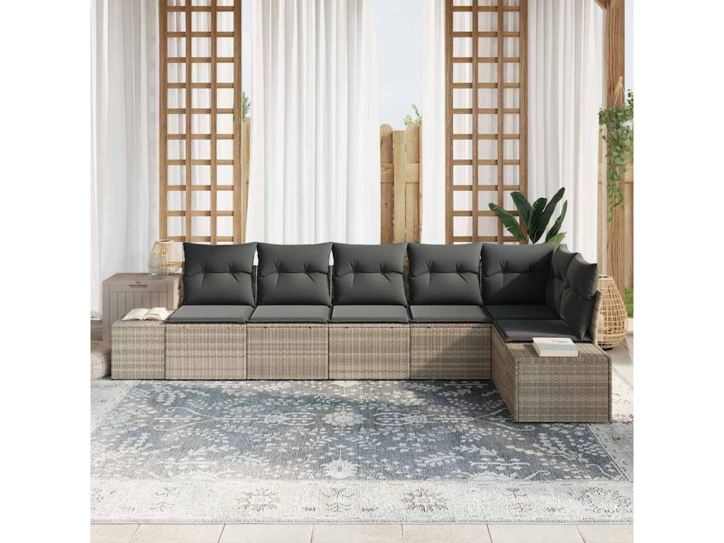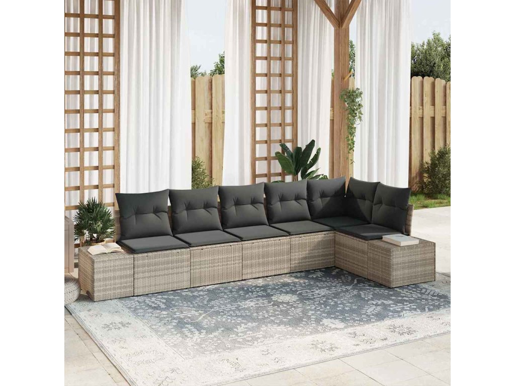 Sada zahradních pohovek s polštářem 6 pcs Světle šedá polyratan 3347082