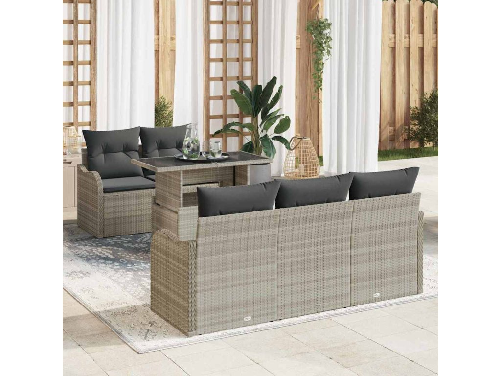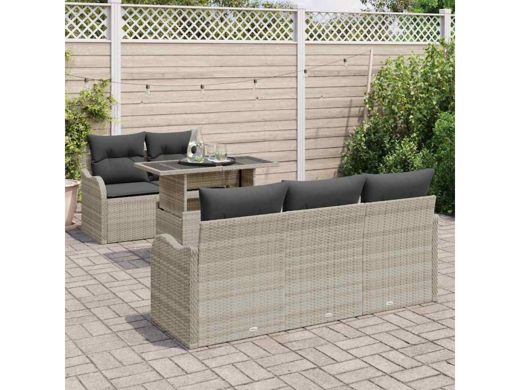 Sada zahradních pohovek s polštářem 6 pcs Světle šedá polyratan 3348378