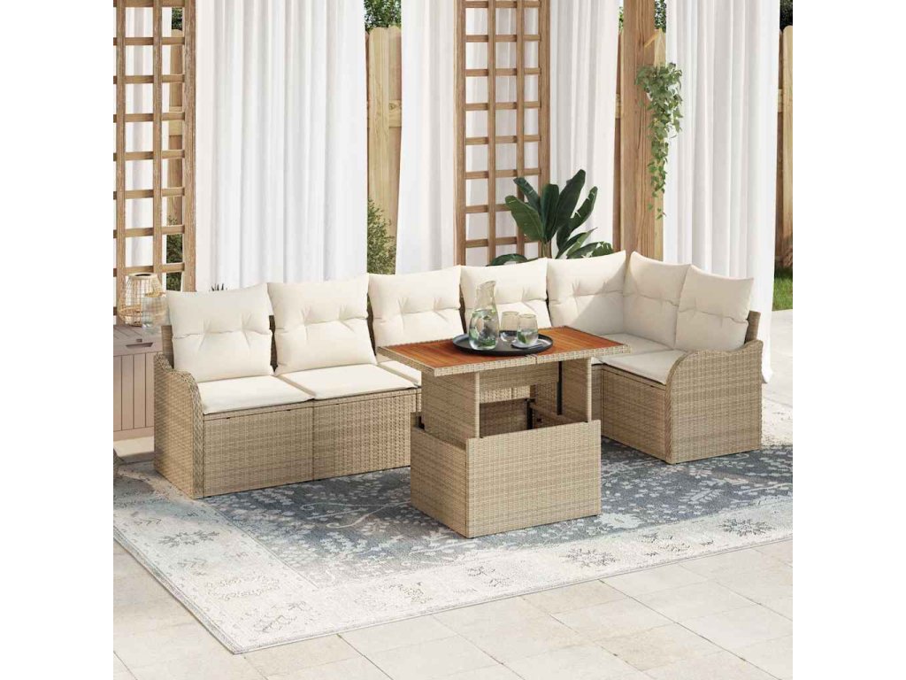 Sada zahradních pohovek s polštářem 7 pcs béžová a krémová 3349469