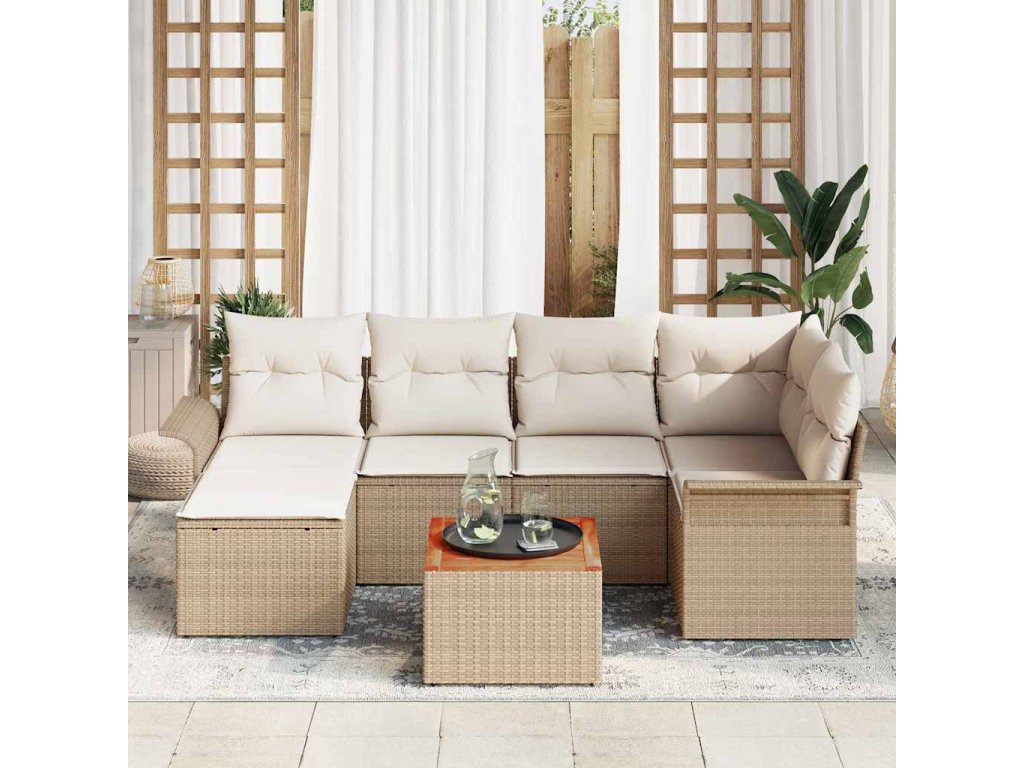 Sada zahradních pohovek s polštářem 7 pcs Béžová a krémová 3356020