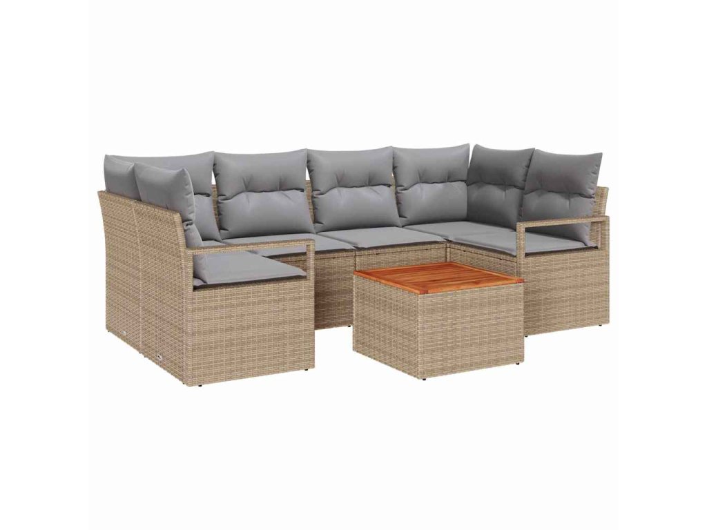 Sada zahradních pohovek s polštářem 7 pcs Béžová Poly ratan 3347658