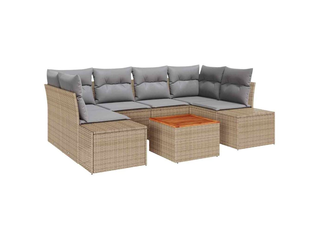 Sada zahradních pohovek s polštářem 7 pcs Béžová Poly ratan 3347910