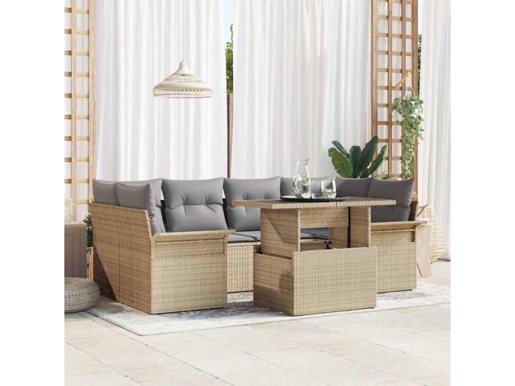 Sada zahradních pohovek s polštářem 7 pcs Béžová Poly ratan 3348216