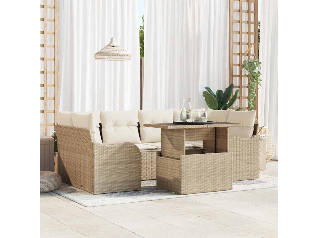 Sada zahradních pohovek s polštářem 7 pcs Béžová Poly ratan 3348397