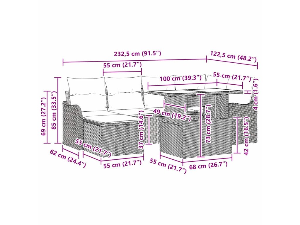 Tato zahradní sada je univerzální a navržená tak, aby poskytovala pohodlí venku. Je v moderním stylu, který spojuje jednoduchost a funkčnost, takže se skvěle hodí do každé zahrady nebo na terasu. S elegantními liniemi a minimalistickým designem může tahle modulární sada ozdobit různé venkovní prostory, a je perfektní na odpočinek nebo společenské setkání. Je navržená tak, aby umožnila různá uspořádání, takže si můžete vytvořit svoje vlastní útulné místo.