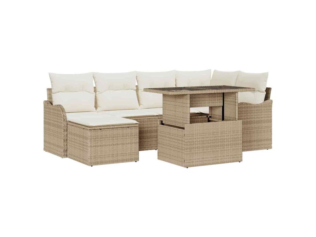 Sada zahradních pohovek s polštářem 7 pcs Béžová Poly ratan 3348497