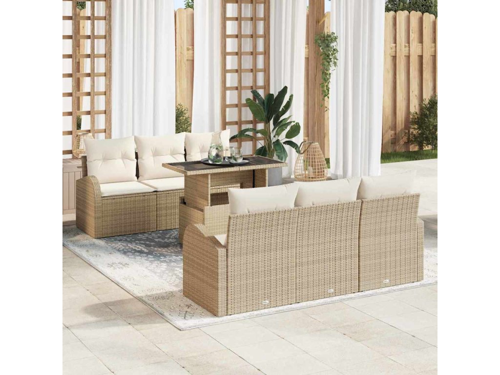 Sada zahradních pohovek s polštářem 7 pcs Béžová Poly ratan 3348567
