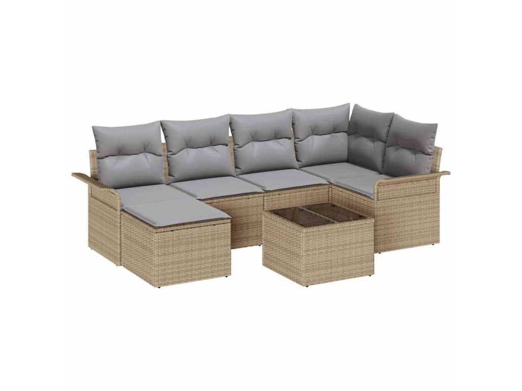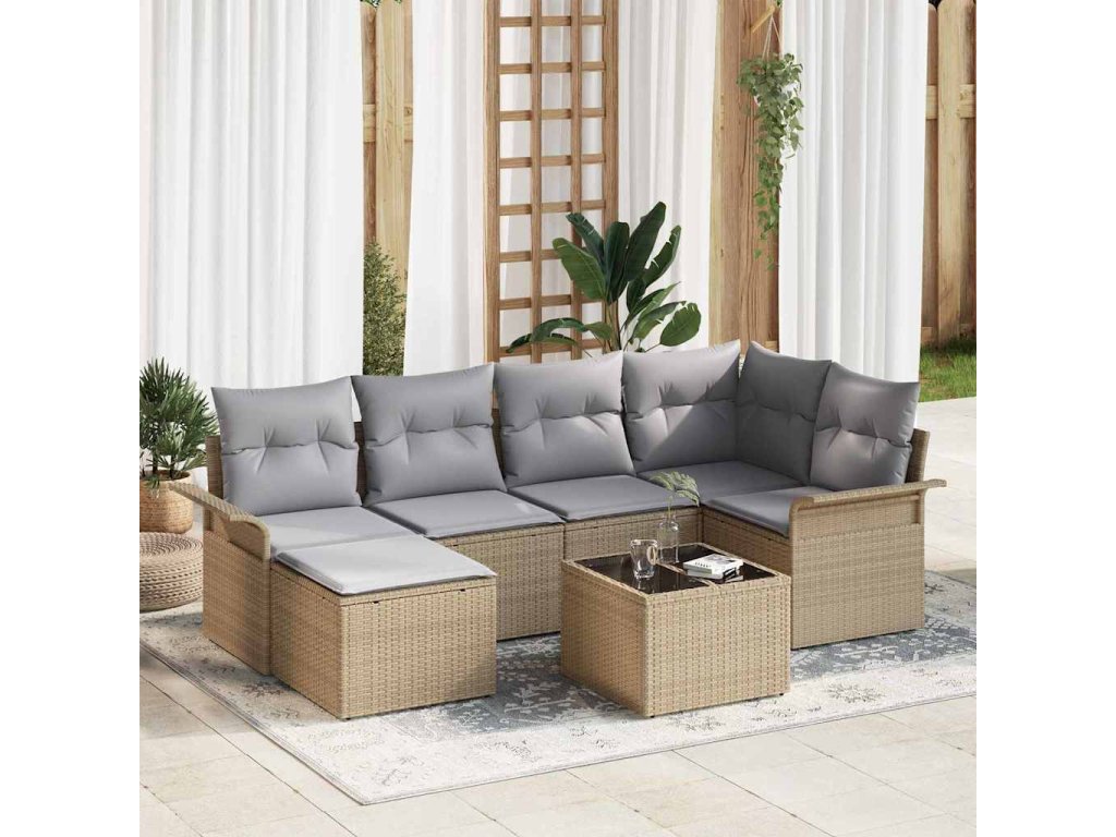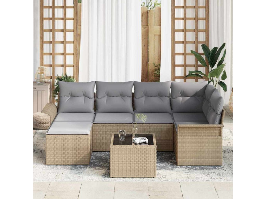 Sada zahradních pohovek s polštářem 7 pcs Béžová Poly ratan 3354109