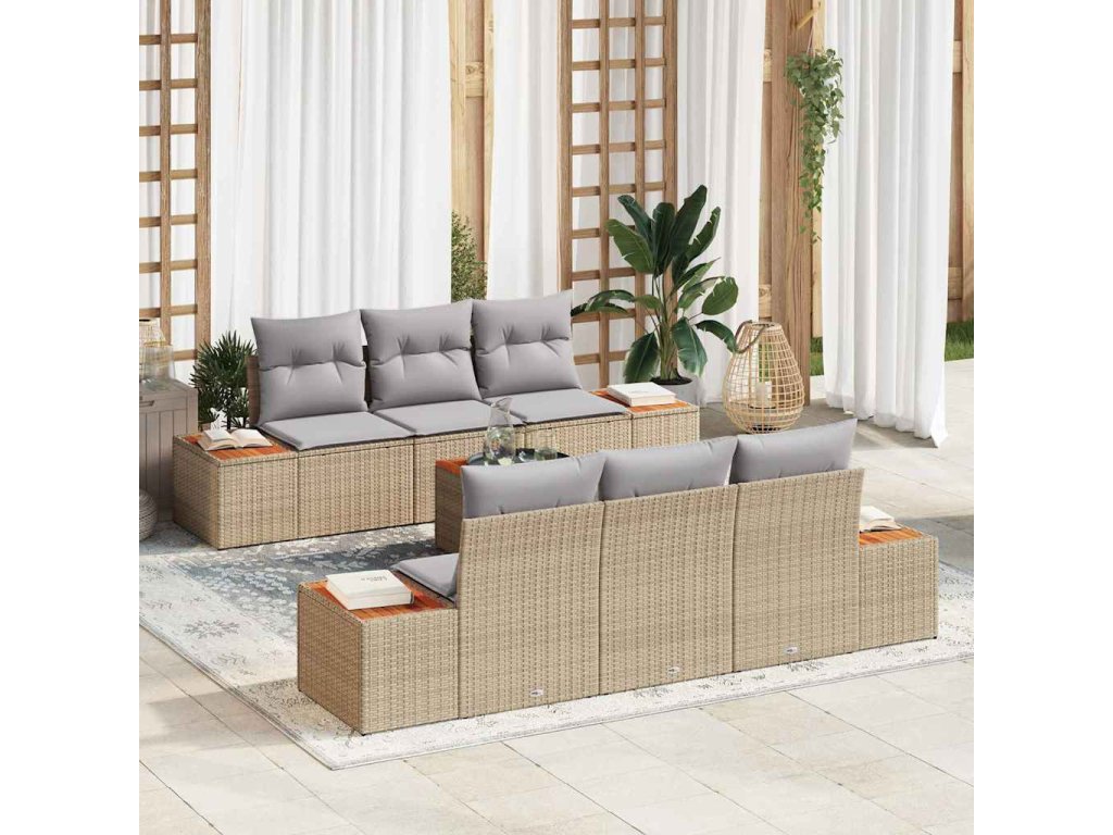 Sada zahradních pohovek s polštářem 7 pcs Béžová Poly ratan 3356700