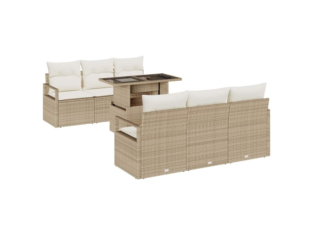 Sada zahradních pohovek s polštářem 7 pcs Béžová Poly ratan 3357484
