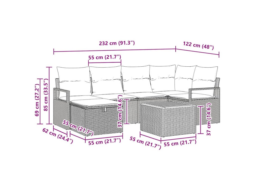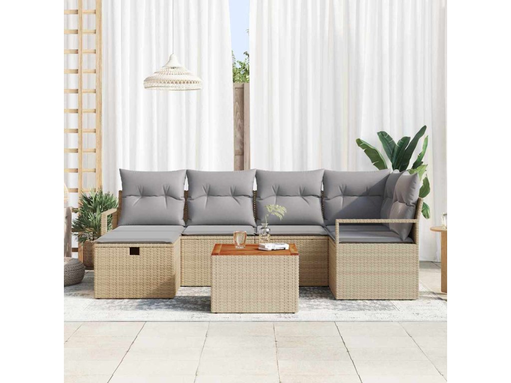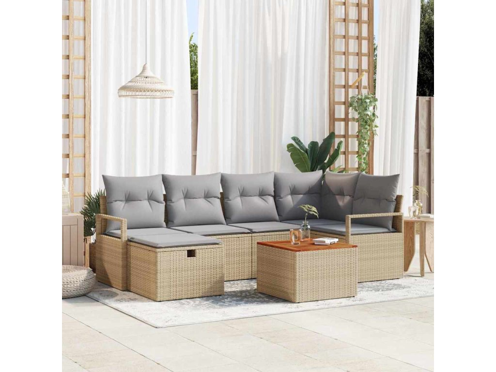 Sada zahradních pohovek s polštářem 7 pcs Béžová Poly ratan 3359539