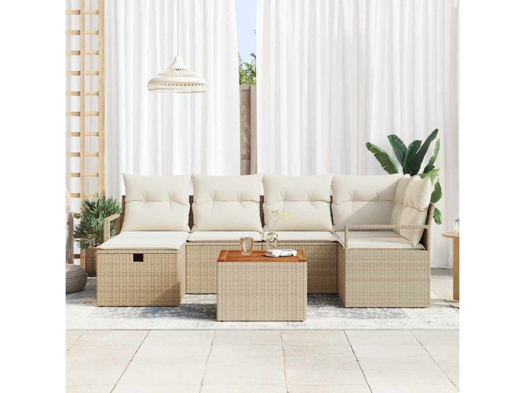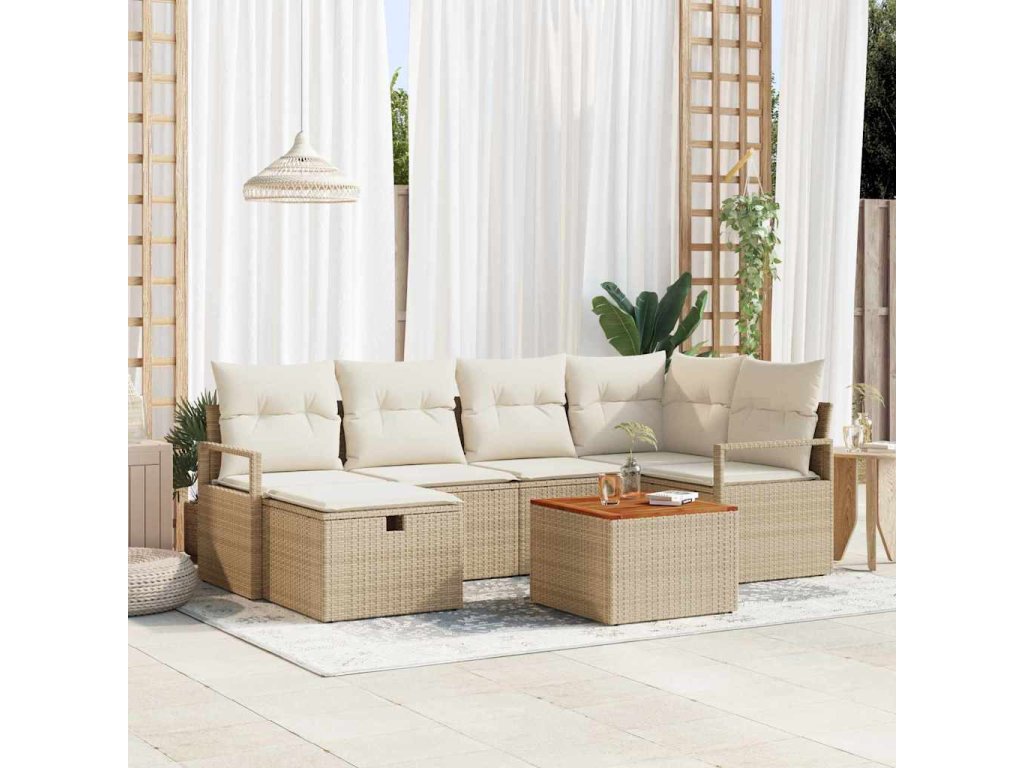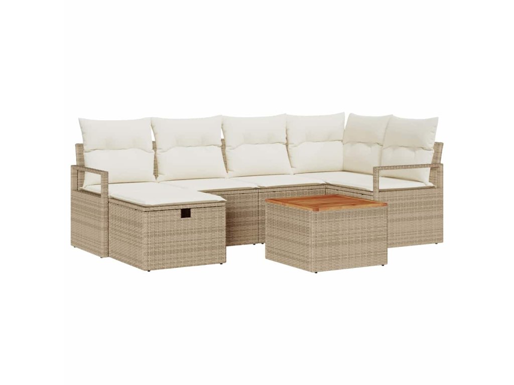 Sada zahradních pohovek s polštářem 7 pcs Béžová Poly ratan 3359540