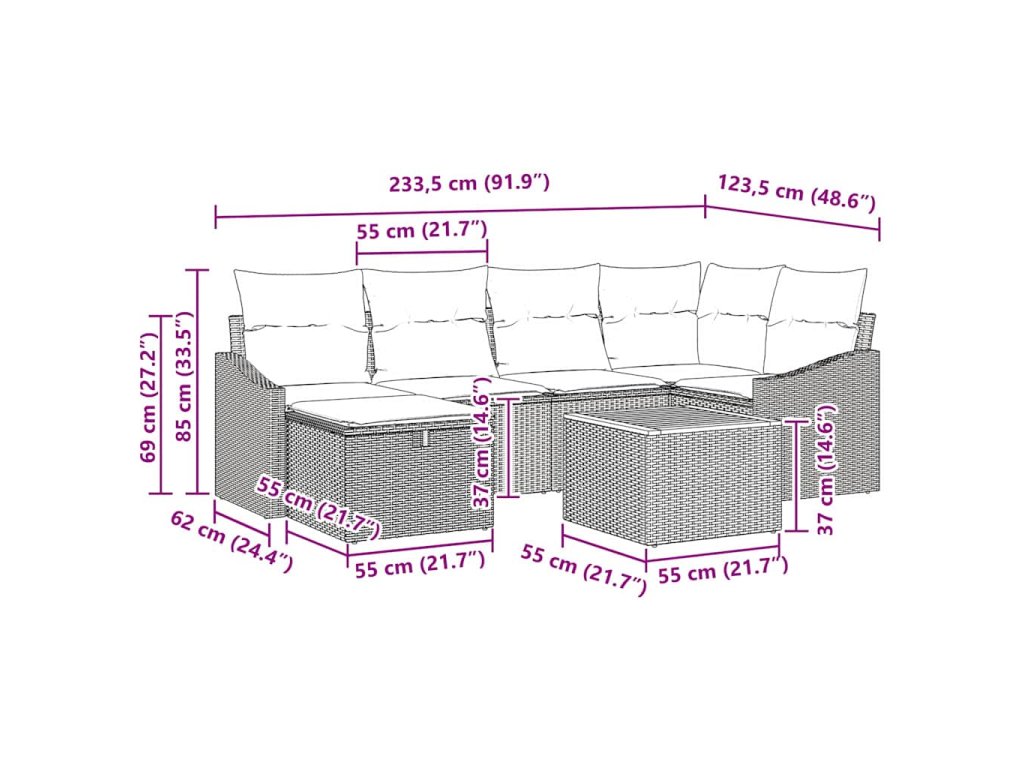 Sada zahradních pohovek s polštářem 7 pcs Béžová Poly ratan 3359567