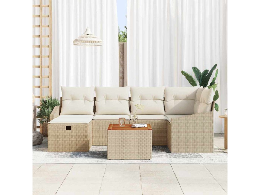 Sada zahradních pohovek s polštářem 7 pcs Béžová Poly ratan 3359568