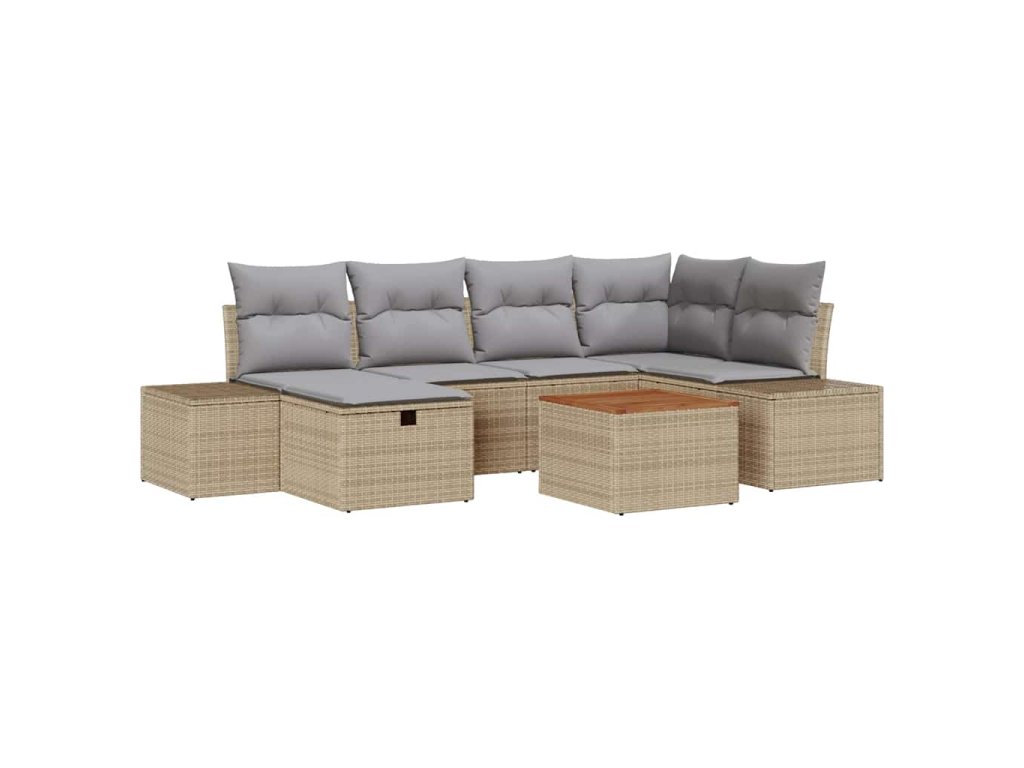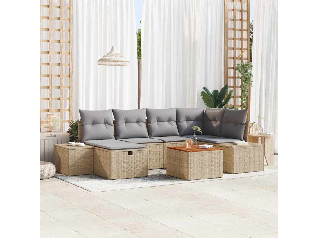Sada zahradních pohovek s polštářem 7 pcs Béžová Poly ratan 3359595