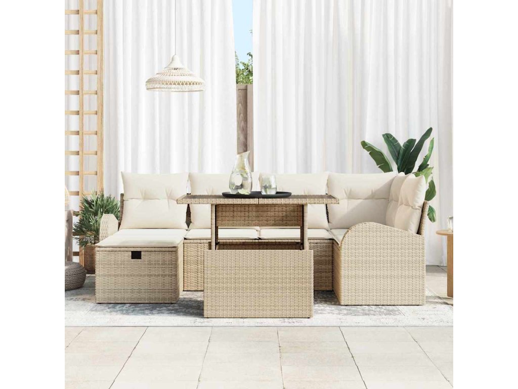 Sada zahradních pohovek s polštářem 7 pcs Béžová Poly ratan 3359758