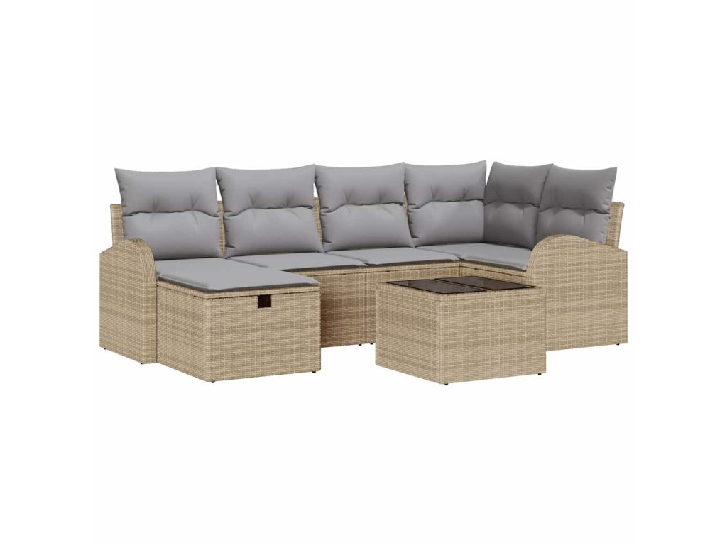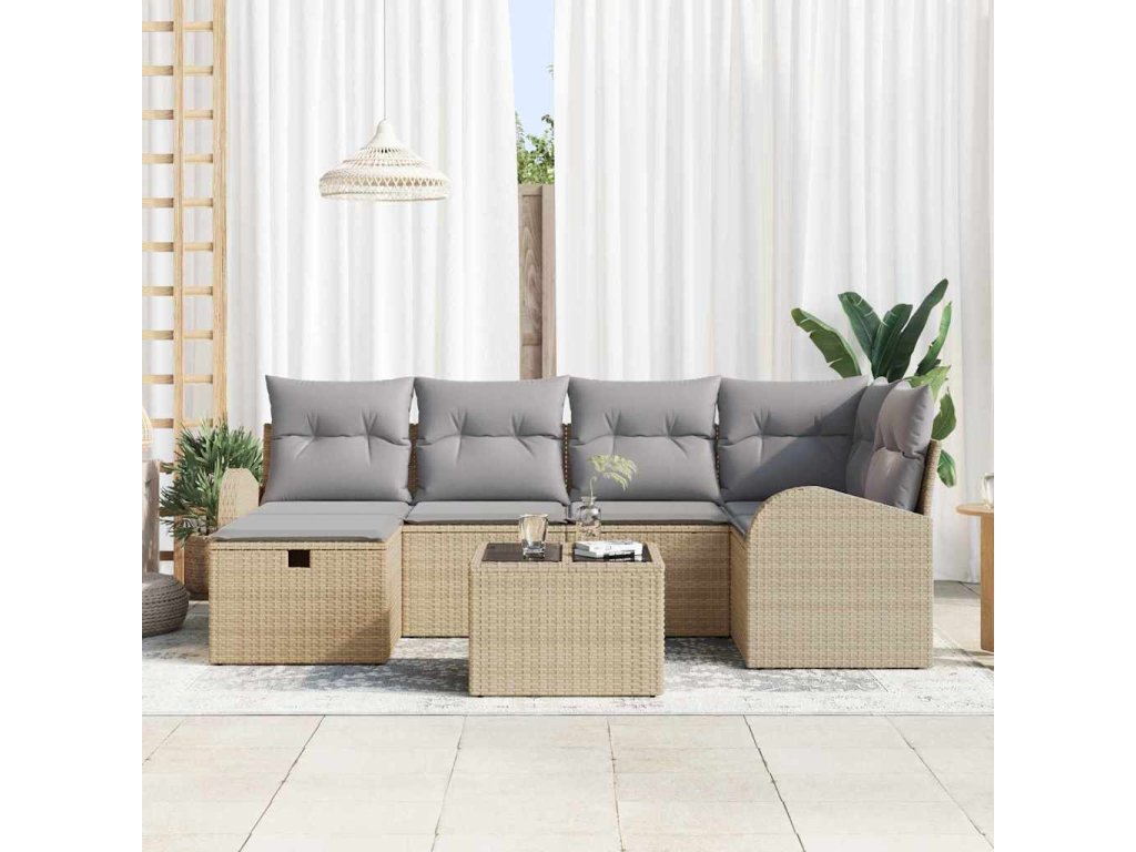Sada zahradních pohovek s polštářem 7 pcs Béžová Poly ratan 3360421