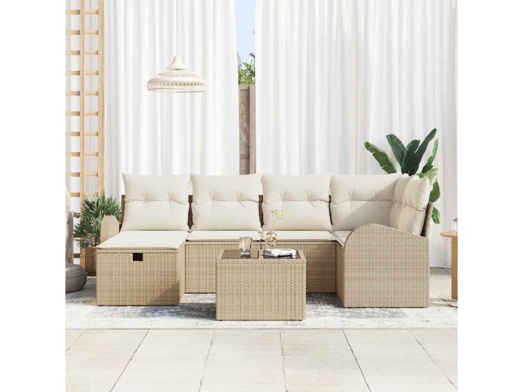 Sada zahradních pohovek s polštářem 7 pcs Béžová Poly ratan 3360422