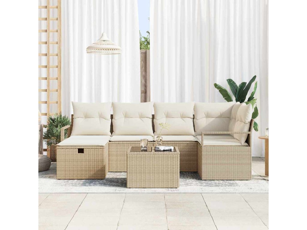 Sada zahradních pohovek s polštářem 7 pcs Béžová Poly ratan 3360522